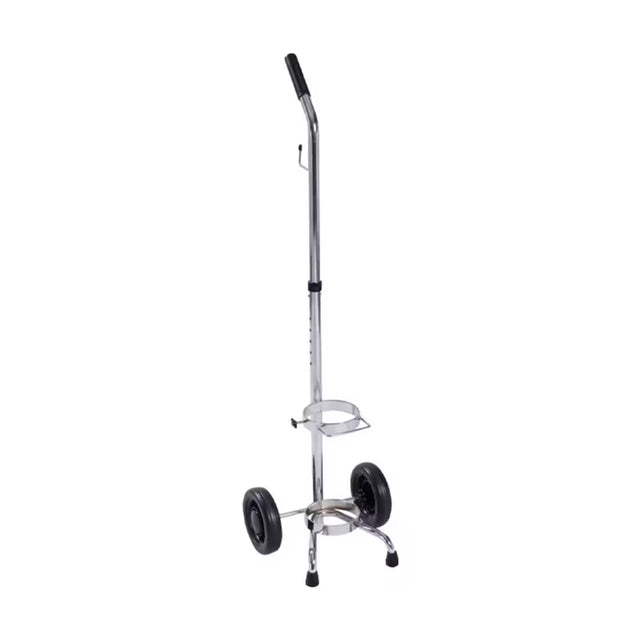 Carro de aluminio diseñado específicamente para cilindros de oxígeno de 680L, que combina durabilidad con practicidad. Cuenta con altura graduable para adaptarse a diferentes espacios y usuarios, ruedas resistentes que garantizan un transporte suave y seguro, y un diseño ligero que facilita su manejo diario. Ideal para hospitales, clínicas, hogares y centros de salud que requieren movilidad confiable y eficiente de equipos de oxígeno.